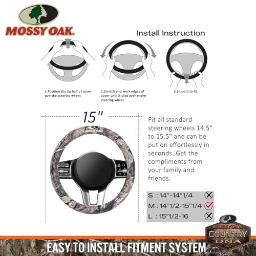 Mossy Oak Full Camo Steering Wheel Cover – Made from Premium Cotton Twill, Universal Fit for 14 1/2 to 15 inches – Official Licensed Product