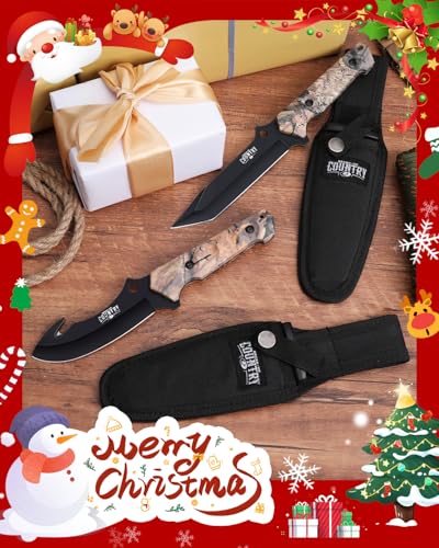Mossy Oak Good Merry Christmas Gift, Fixed Blade Hunting Knife Set – 2 Piece, Full Tang Handle Straight Edge and Gut Hook Blades Game Processing Knife, Sheath Included