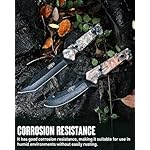 Full-Tang Camo Handle: Unique green camo pattern on handle surface, modish and concealed for outdoors, comfortable grip and balance, ergonomic handle groove is non-slip to use. Lanyard hole for easier carry