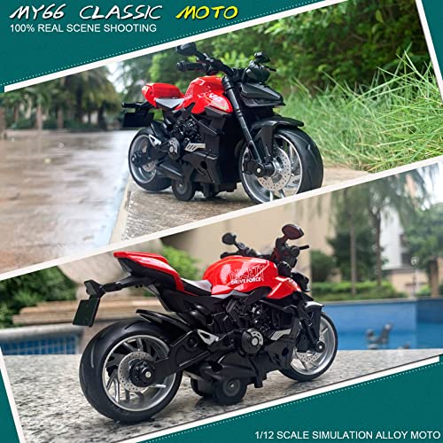 【Pull-Back Motorcycle】 Pull back the motorcycle toy, and release it to race at the maximum speed. Kids can play it on the floor, table, home, outdoors and etc.