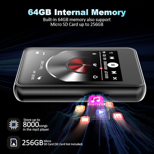 【Portable Music Player with 64GB Memory 】This MP3 player comes with built-in 64GB memory and built-in Micro SD card slot support extended memory up to 256GB so you can easily put all your favorite songs on this MP3 player without worrying about the memory capacity