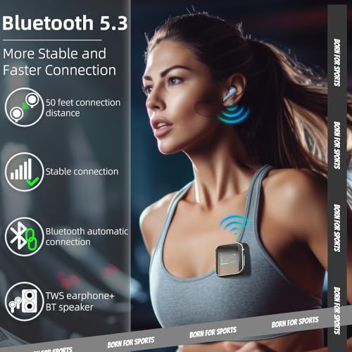 - Sport Cilp MP3 Player with Bluetooth: WiWOO Bluetooth mp3 player with low power consumption can quickly connect to Bluetooth speakers, Bluetooth headsets from 2.0 to 5.2. Stable and long-distance Bluetooth connection with plastic body – Not suitable for use with car Bluetooth speakers.