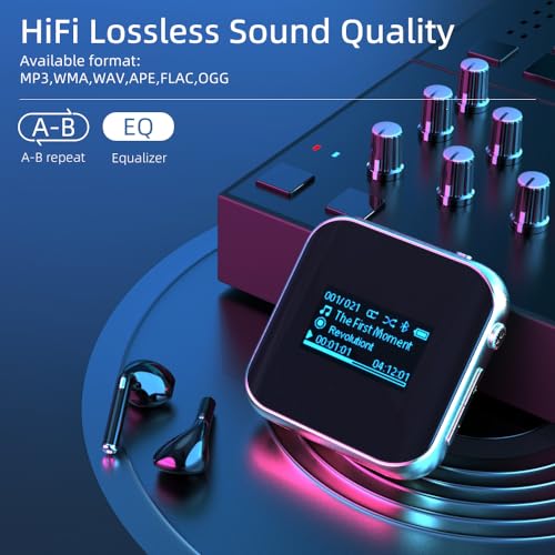 - Special OLED Display: Clear and integrated OLED display (0.97 x 0.54 Inches), WiWOO mp3 player with bluetooth is scratch resistant and non-touch screen. WiWOO MP3 player with Bluetooth has 6 standby operation buttons with one easy wake up button. Independent volume adjustment buttons for easy use and sweat proof buttons for reliable functionality.
