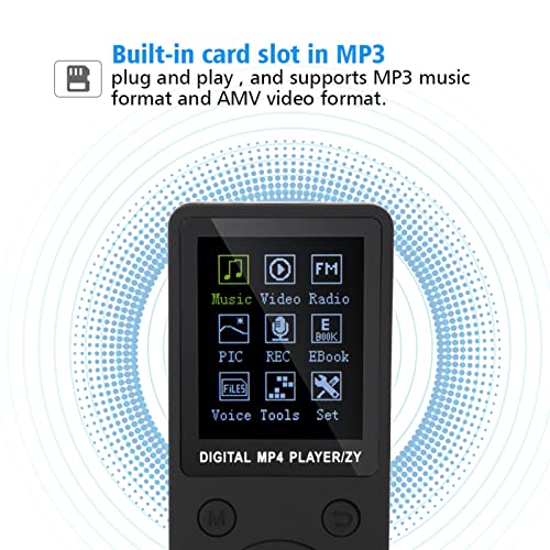 [Plug-and-Play with Card Slot] Featuring a built-in card slot, this MP4 music player supports plug-and-play functionality. It’s compatible with MP3 music format and AMV video format, offering convenience and easy file access.