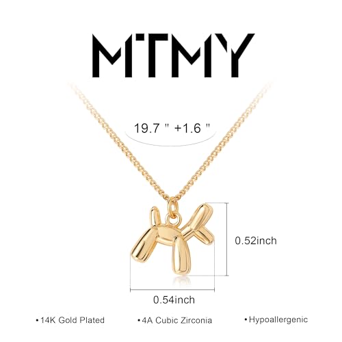 MTMY Balloon Dog Pendant Necklace for Women 14K Gold Plated 3D Cute Puppy Charm Necklace Animal Necklaces Jewelry