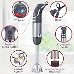 MULTI-FUNCTIONAL MASTERY – Beyond blending, our comprehensive set includes a Snap-on Whisk attachment, Frother attachment, Beaker (20 fl. oz) and Twist and Lock Chopper (16oz) with removable blade, redefining the 4-in-1 kitchen appliance concept. The chopper acts as your mini food processor with the perfect lid to eliminate mess and tearing eyes when chopping white or red onions!