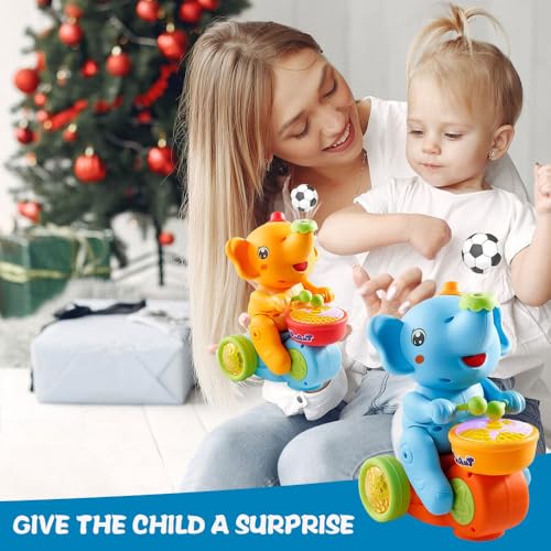 Great Crawling Toy for Baby: The Musical Walking Elephant Drummer Toy has a cute appearance and bright colors, which is very attractive to your child and will attract your child to chase and crawl when it moves.