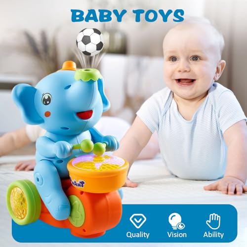 Great Crawling Toy for Baby: The Musical Walking Elephant Drummer Toy has a cute appearance and bright colors, which is very attractive to your child and will attract your child to chase and crawl when it moves.