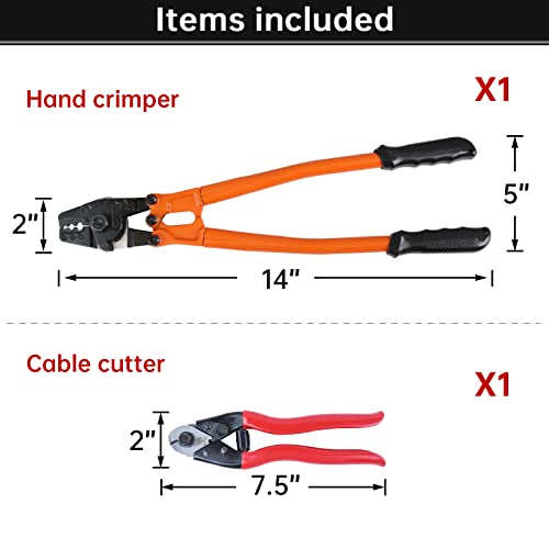 Muzata Hand Swager Crimper 14” Wire Rope crimping Tool for Aluminum Copper Sleeve Ferrule 1/16” 5/64” 3/32” 7/64” 1/8” Cable Railing End Fitting Terminals with Cable Cutter, CT03, CT1