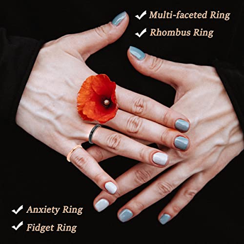 Nanafast 3mm Titanium Steel Anxiety Rings for Women Men Multi-faceted Wedding Band Fidget Rings for Anxiety for Women Rhombus Spinner Ring for Stess Relief Comfort Fit for Engagement