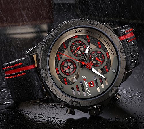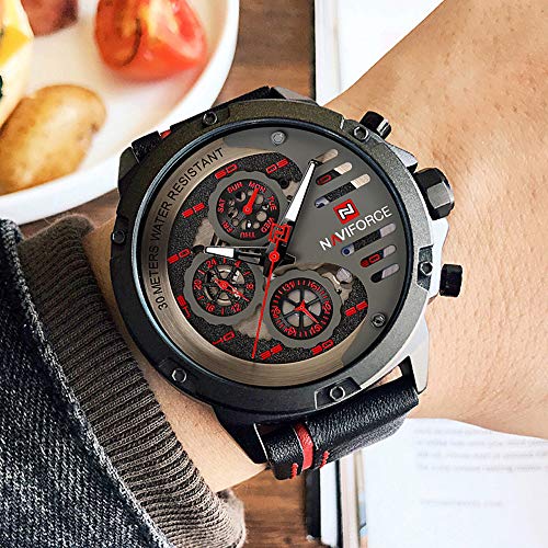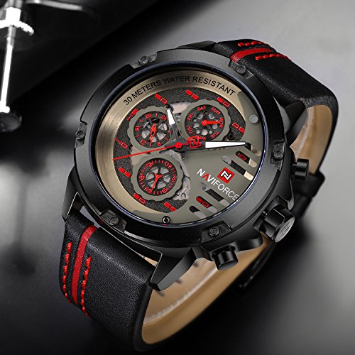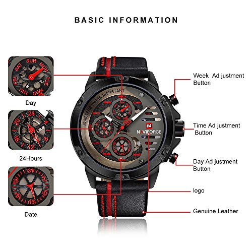 NAVIFORCE Sport Military Watches for Men Waterproof Watch Analog Quartz Leather Band Date Calendar Clock Wristwatch
