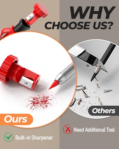 - ❤【Deep Hole Marker Pencil With Sharpener】: The 3pack deep-hole construction pencils adopts 45mm elongated tip design, which is more convenient to mark in the small hole or in other tight areas. In addition this, the woodworking pencils come with a built in sharpener screwed into the top of each work pencil for providing nice precision at all times.