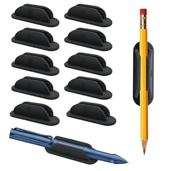 Adhesive Pencil Holders for Desk Set of 10 – Silicone Pen Holder with 15 PCS Adhesive Pads – Flexible Pencil Holder for Office Essentials Accessories and Teacher Supplies