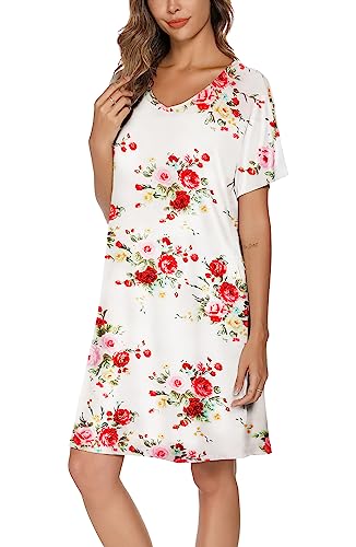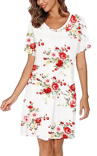Nightgowns for Women Soft Cotton Sleep Shirts Short Sleeve Sleepwear S-XXL