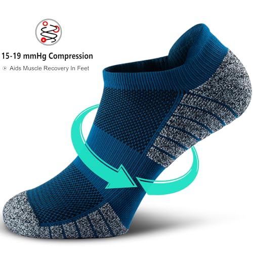 - No Show Compression Socks: 15-19 mmHg Compression will comfortably wrap around the feet and hug the muscles for ultimate comfort and improved performance
