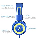 Designed for kids ages 3 to 16, little or older kids, girls, boys, children, toddlers, home/online school, training, long plane or car rides. On-ear headphones have padded soft cushions with a semi-gloss finish for a comfortable fit. The headband is adjustable and flexible to fit most head sizes. The headphones can also be folded in, making it small and compact for easy storage. The cord is a 5 feet long durable nylon braided cable that prevents tangling.
