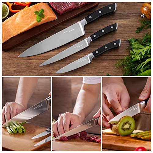 OAKSWARE Kitchen Knife Set 3-Piece, Ultra Sharp Kitchen Knives, Paring Knife and Utility Knife for Kitchen, German Steel & Ergonomic ABS-Handle