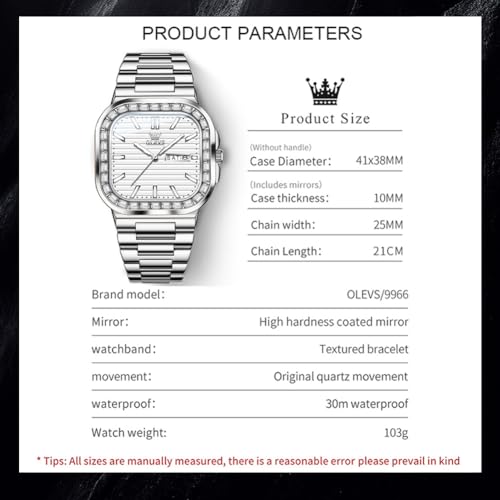 Be the first to review “OLEVS Mens Tank Watch Minimalist Diamond Watch Fashion Dress Analog Quartz Mens Watches Rectangular Waterproof Stainless Steel Luminous with Date Watches for Men(Silver/Rose Gold)” Cancel reply