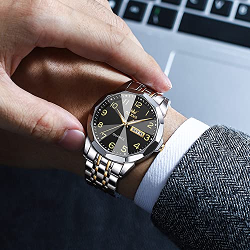 OLEVS Watch for Men Women Large Face Unisex Diamond Luxury Dress Analog Quartz Stainless Steel Waterproof Luminous Date Business Casual Wrist Watch