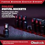 IMPACT SWIVEL SOCKETS – Featuring pinless universal joints, our Impact Swivel Socket Set transforms automotive work. The pinless design allows for a swivel angle of 30° with full 360° rotation and includes a red aluminum socket rail.