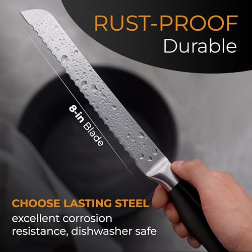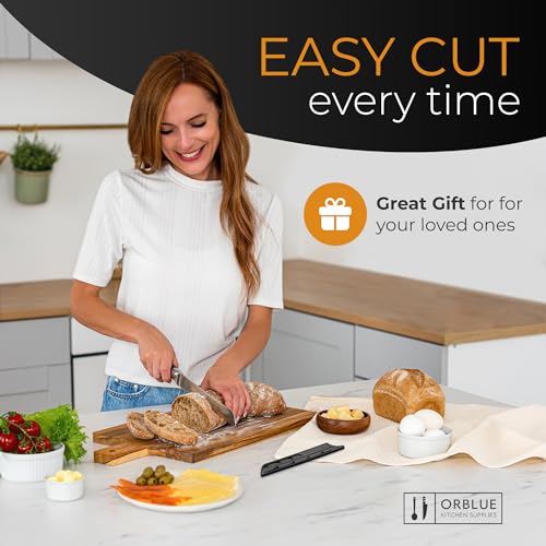 Orblue Serrated Bread Knife Ultra-Sharp Stainless Steel Professional Grade Bread Cutter – Cuts Thick Loaves Effortlessly – (8-Inch Blade with 5-Inch Handle), Black