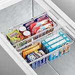Expandable Chest Freezer Basket – The basket design features a telescoping adjustment to rest on the freezer railing. The adjustable wire basket bin can be locked at any length between 16.5″ and 26.5″ that you need to fit for your chest freezer and maximize the use of freezer internal space.