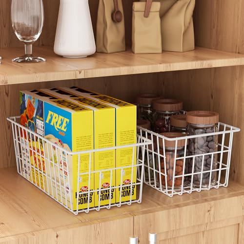 - Cabinet Organizer Bins : The wire basket is a multipurpose bin, not only for freezer organizer but a great organizer for cabinet, kitchen, pantry, bedroom, bathroom, laundry and other areas where needs orderly. Suitable for storage and organization frozen meat, food, snacks, cloths, books, vegetable, fruit, cleaning supplies, toiletries and so on.
