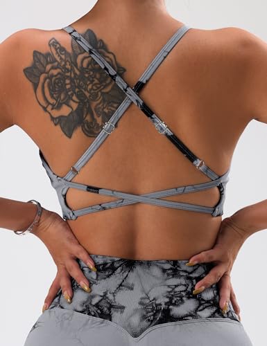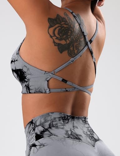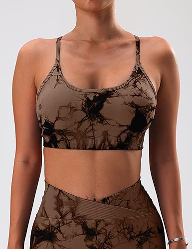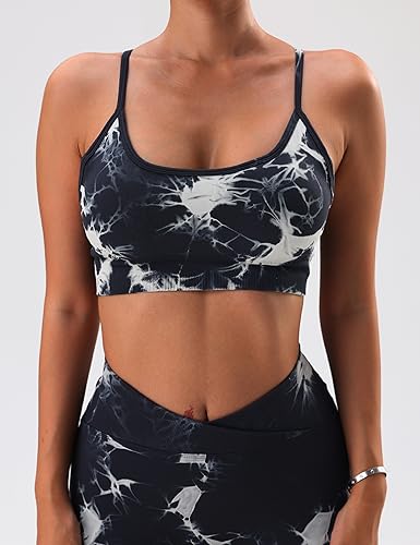 OVESPORT 3 Piece Women’s Workout Sports Bras Seamless Tie-dye Strappy Gym Yoga Crop Bra