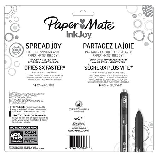 The Paper Mate InkJoy gel pen pack of 14 offers a range of vibrant colors for exceptional note-taking, art creations, and everyday writing tasks. Equipped with a medium point (0.7 mm), these pens ensure smooth and uninterrupted writing, making them a must-have for students, professionals, and artists alike. Moreover, the fast-drying ink reduces smudges and keeps your work neat. Each gel pen is imbued with high-quality ink that promises consistency, longevity, and versatility on various surfaces. Whether you use these gel pens for creating vibrant artwork or distinguishing important details in your notes, Paper Mate InkJoy guarantees precision, comfort, and satisfaction.