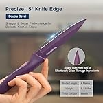Prominent Double-bevel 15° Knife Edge for Impressive Sharpness and Edge Retention: Easily slides through veggies, fruits and other smaller ingredients, Gourmetop paring knife has a pointy knife tip and remains the ultra-sharpness from heel to tip of the knife blade. Compared to most blade angles, the 15° blade angle is finer and more accurate, which produces an exceptionally sharp edge, perfect for precise tasks like deveining a shrimp or peeling a tomato.