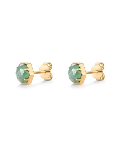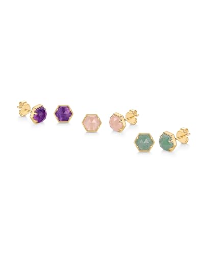 PAVOI 14K Gold Plated Hexagon Gemstone Stud Earrings for Women | Natural Birthstone Earring Pair