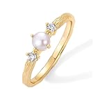 PAVOI 14K Gold Plated Pearl Hammered Ring for Women | Dainty Elegant Stackable Cubic Zirconia Thin Band for Women