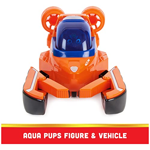ZUMA ACTION FIGURE: Geared up in his orange Aqua Pups wetsuit uniform, complete with helmet and backpack, Zuma is ready for some exciting rescue missions in the pretend sea