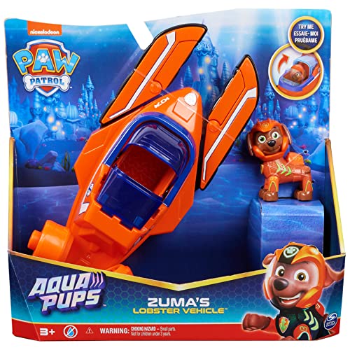 Team up with Zuma, for some action packed rescue missions, in his Aqua Pups – Lobster Rescue Vehicle! Suited in his orange Aqua Pups wetsuit and helmet, Zuma is ready for supercharged rescues in the pretend sea! Zuma’s Lobster Vehicle features an exciting transformation! Simply place Zuma in the vehicle cockpit and slide the canopy shut, to engage the lobster claw action, transforming his vehicle into rescue mode! When there’s trouble, quickly transform into rescue mode and speed off to the rescue, then use the articulated lobster claws to clear away any obstacles! Create PAWsome adventures with Zuma’s Lobster Rescue Vehicle! Then, for even more exciting series-inspired missions, collect all the Aqua Pups figures and toy vehicles, (sold separately) for endless hours of action-packed adventures! With PAW Patrol toys, kids can explore their imaginations and develop their motor skills, through pretend play, as they bring their favorite scenes from the show to life! PAW Patrol action figures, toy cars, playsets and stuffed animals are the perfect toys for boys and girls aged 3 and up, so bring home the excitement of the PAW Patrol: Aqua Pups!