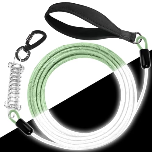 Reflective Dog Leash Chew Proof: 15 ft Heavy Duty Dog Lead for Small Large Dogs - Waterproof Pet Long Chain Leashes with Swivel Lockable Hook and Shock Absorbing Spring for Outdoor Training Walking $14.99