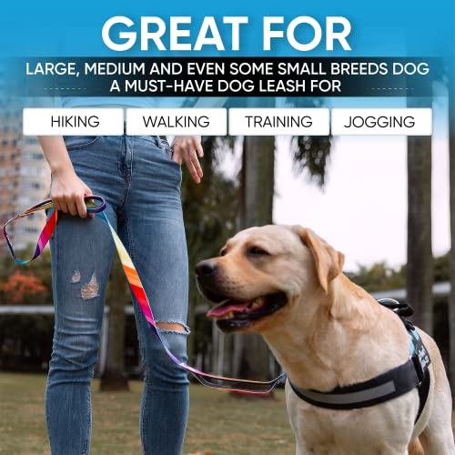 DUAL HANDLE DOG LEASH: Ideal for hiking and training, this ultra-strong dog leash ensures easy control of even large dogs. Complete with an auto-lock clasp for safety, the soft neoprene handles create a comfortable walking experience without rope burn.