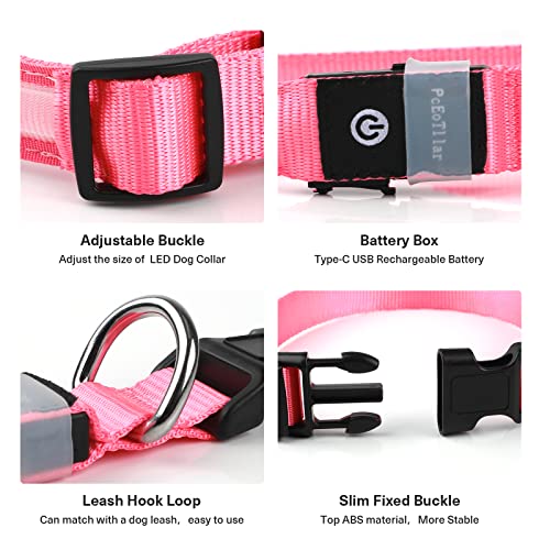 PcEoTllar Light Up Dog Collars, Rechargeable Led Dog Collar with Automatic 7-Color Changes, Water Resistant Lighted Dog Collar for Night Walking with High Visibility, Bright Glow Dog Collar(Pink, L)