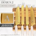 CUTTING-EDGE DESIGN, PERSONALIZED KNIFE FOR YOU! Want your knives to feel like your own? It’s easy! 1) Pick your options: monogram handle, name on blade, or custom text. 2) Enter your personalized message. 3) Choose your favorite font. 4) Select which knife(s) you want to customize. Your unique engraved gold knife will make every chop, slice, and dice a little more special—just like you deserve