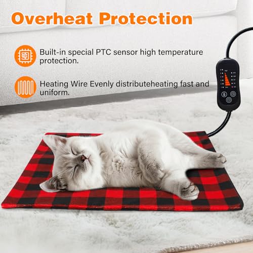 Pet Heating Pad, Adjustable Temperature Heated Cat Bed with Timer, Outdoor Waterproof Heated Dog Bed with Anti-Chew Cord, Overheat Protection Warming Mat for Cats and Puppies (S:17.7″x17.7″)