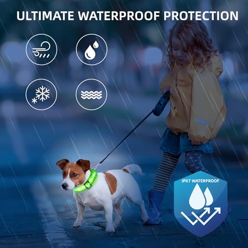 Ultimate Waterproof Protection: Designed with revolutionary waterproof and dustproof technology, this collar is ideal for daily activities, including showers, rain runs, and even swims in the lake. Enjoy worry-free adventures while keeping your pet safe and visible. (Ensure the charging port is securely covered before water exposure.)