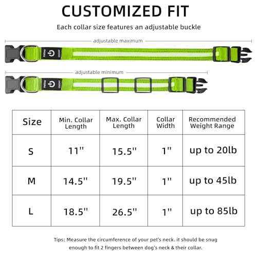 Customized Fit: Each collar size features an adjustable buckle, ensuring a tailored fit for your dog’s comfort and safety. Plus, the Heavy-Duty D-ring seamlessly connects with any dog leash for added convenience during walks or hikes.