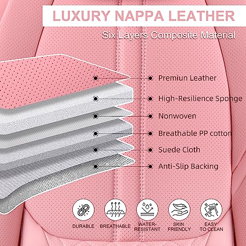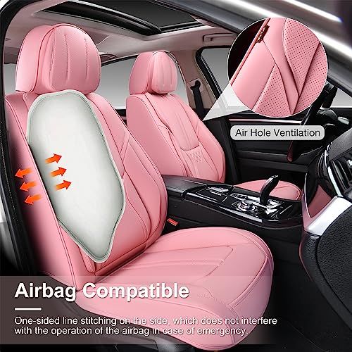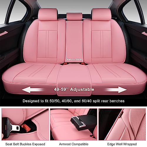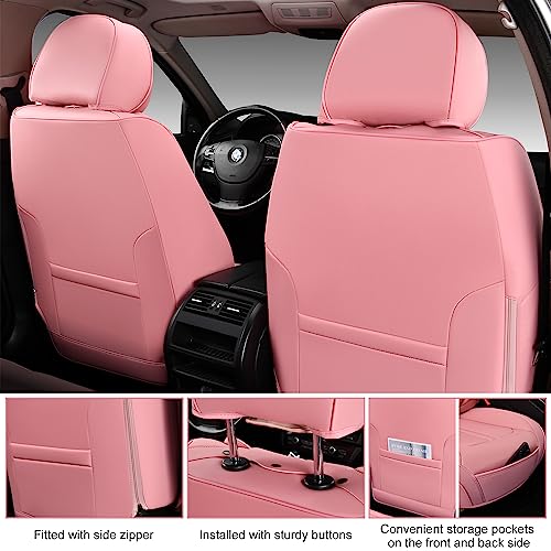 Pink Car Seat Covers, Universal Seat Covers for Cars Full Set, Waterproof Leatherette Auto Seat Protectors Car Seat Cushions, Front and Rear Seat Protectors Fit for Most Sedans SUV Pick-up Truck