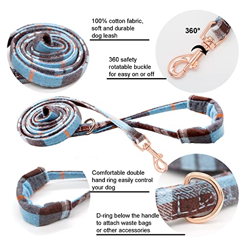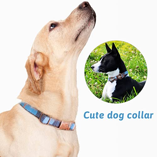 Plaid Dog Collar Leash Set Bow Tie Adjustable Cute Puppy Collar with Durable Metal Buckle Girls Boys Dog Collar for Small Medium Large Dogs Blue-XS