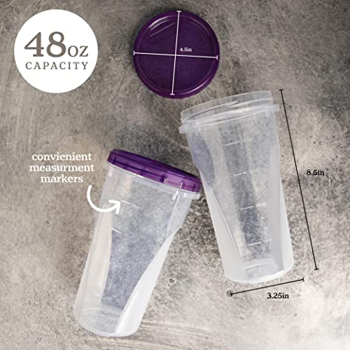 48 Ounce Twist Top Deli Containers Clear bottom With Purple Top Twist on Lids Reusable, Stackable, Food Storage Freezer Container Pack of