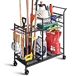 PLKOW Garden Tool Organizer with Wheels, Garden Tool Rack, Yard Tool Holder for Rakes, Shovel, Fertilizer, Garden Tool Storage for Garage, Shed, Outdoor