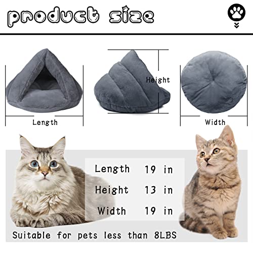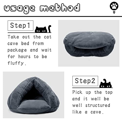Plush Cat Cave Tent Bed Self Warming Pet Bed Washable Portable Sleeping Bag for Indoors Cats and Puppy (Grey)