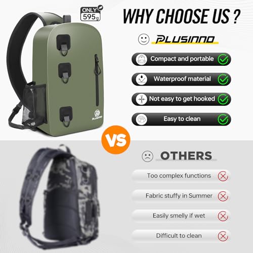 Home Camping Fishing Gear PLUSINNO Waterproof Fishing Backpack, 12L Fishing Sling Bag, Fishing Tackle Bag with Waterproof Zippers for Fishing, Kayaking