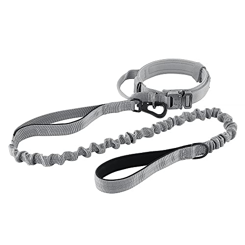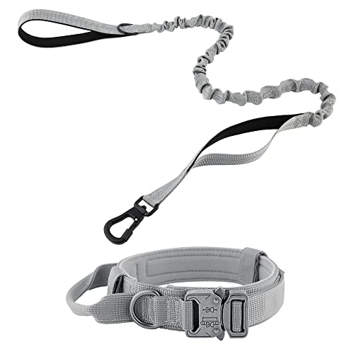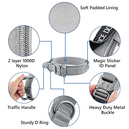 Plutus Pet Tactical Dog Collar, Soft Padded, Adjustable with Heavy Duty Metal Buckle, Military Dog Collar with Control Handle for Medium Large and Extra Large Dogs (XL, Gray Set)