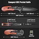 Pocket Knife for Men – 3.46″ Sharp Blade Wood Handle Pocket Folding Knives with Clip, Glass Breaker – EDC Knives for Survival Camping Fishing Hiking Hunting Women, Black