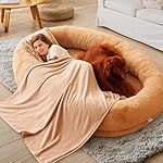 Versatile spacious with a blanket:Top surface of our huge giant human dog bed for adult people feels super cozy soft and plush.Designed specifically to help you relax and destress from daily busy work, you will step into a world of great comfort in our human size dog bed. This fluffy retreat provides spacious room for napping,cuddling,watching TV or movie,reading,playing games in your living room, bedroom,or office. It acts like a mattress with a handy pocket you can keep your phones, books, remote controls, tablets, and glasses…etc